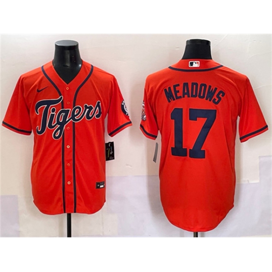 >Men's Detroit Tigers #17 Parker Meadows Orange With Cool Base Stitched Baseball Jersey