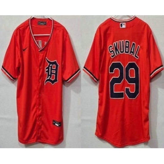 Men's Detroit Tigers #29 Tarik Skubal Orange Cool Base Jersey