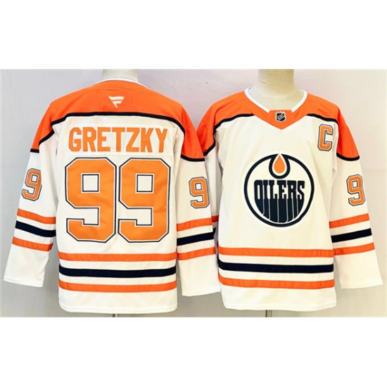 >Men's Edmonton Oilers #99 Wayne Gretzky White Orange 2024-25 With C Heritage Classic Primegreen Stitched Jersey
