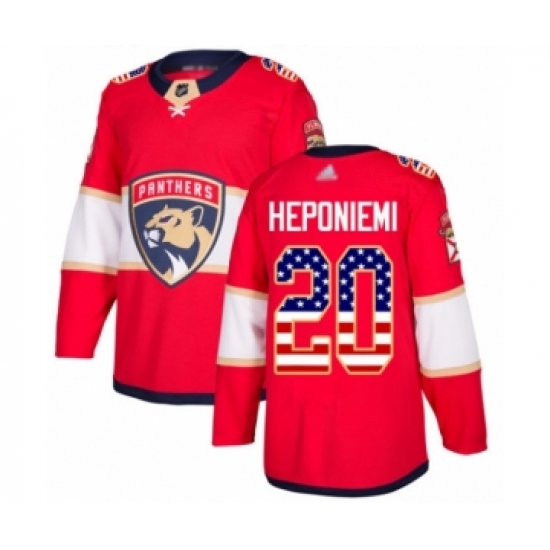 Men's Florida Panthers #20 Aleksi Heponiemi Authentic Red USA Flag Fashion Hockey Jersey