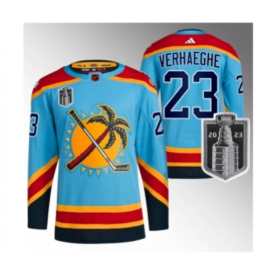 Men's Florida Panthers #23 Carter Verhaeghe Blue 2023 Stanley Cup Final Reverse Retro Stitched Jersey