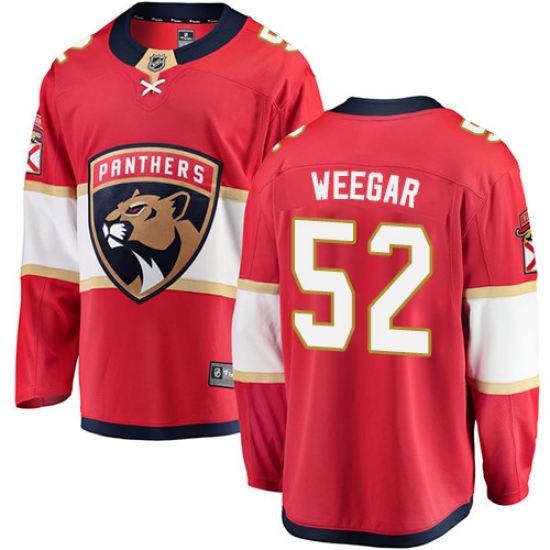 Home>NHL>Florida Panthers>MacKenzie Weegar>Men's Florida Panthers #52 MacKenzie Weegar Fanatics Branded Red Home Breakaway NHL Jersey