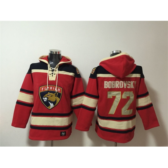 Men's Florida Panthers #72 Sergei Bobrovsky Red Lace-Up Pullover Hoodie
