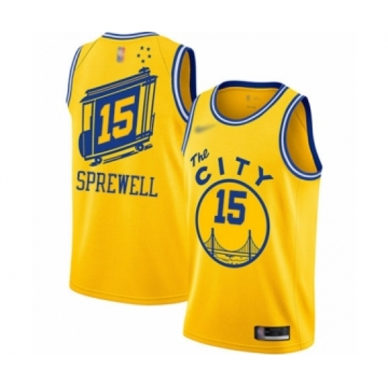 Men's Golden State Warriors #15 Latrell Sprewell Authentic Gold Hardwood Classics Basketball Jersey - The City Classic Edition