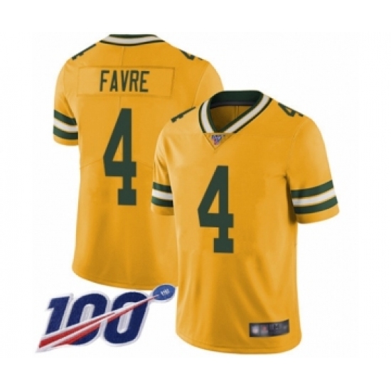 >Men's Green Bay Packers #4 Brett Favre Limited Gold Rush Vapor Untouchable 100th Season Football Jersey