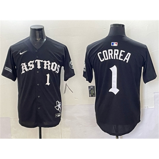 Men's Houston Astros #1 Carlos Correa Black Gothic 'Houston Born Barrio Raised' Limited Stitched Baseball Jersey