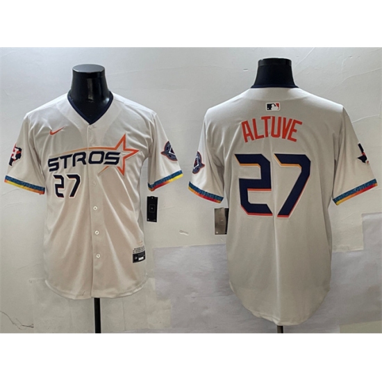 Men's Houston Astros #27 Jose Altuve Cream 2025 City Connect With Texas Limited Stitched Baseball Jersey