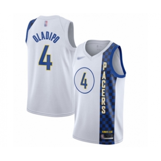 >Men's Indiana Pacers #4 Victor Oladipo Swingman White Basketball Jersey - 2019 20 City Edition