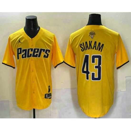 >Men's Indiana Pacers #43 Pascal Siakam Yellow 2025 Finals Vapor Stitched Baseball Jersey