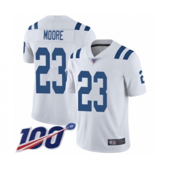 >Men's Indianapolis Colts #23 Kenny Moore White Vapor Untouchable Limited Player 100th Season Football Jersey
