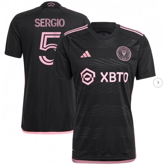 Men's Inter Miami CF #5 Sergio Black 2023-24 Away Soccer Jersey