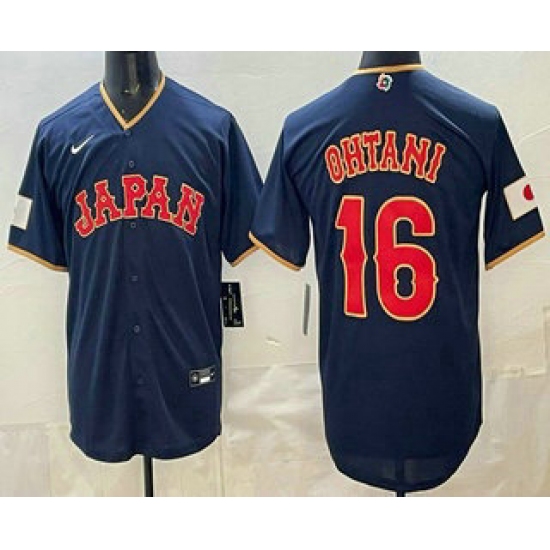 Men's Japan Baseball #16 Shohei Ohtani Navy 2026 World Baseball Classic Road Stadium Stitched Jersey
