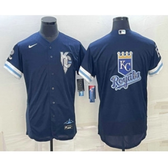 Men's Kansas City Royals Big Logo 2022 Navy Blue City Connect Flex Base Stitched Jersey