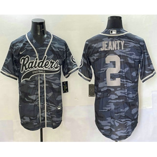 >Men's Las Vegas Raiders #2 Ashton Jeanty Grey Camo With Cool Base Stitched Baseball Jersey