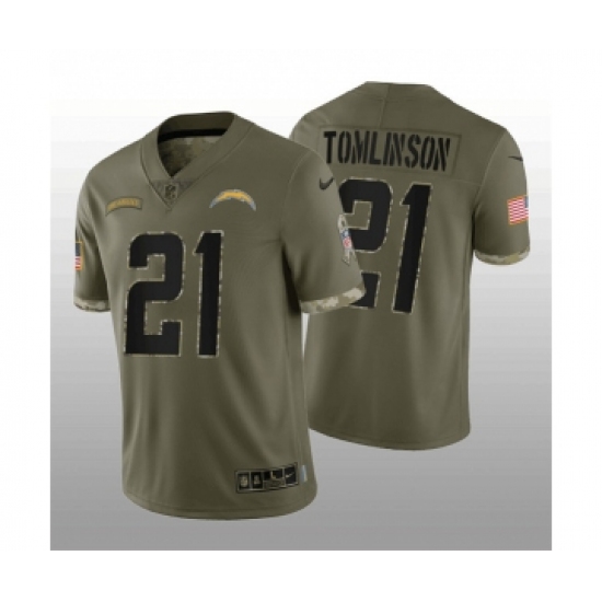 >Men's Los Angeles Chargers #21 LaDainian Tomlinson 2022 Olive Salute To Service Limited Stitched Jersey