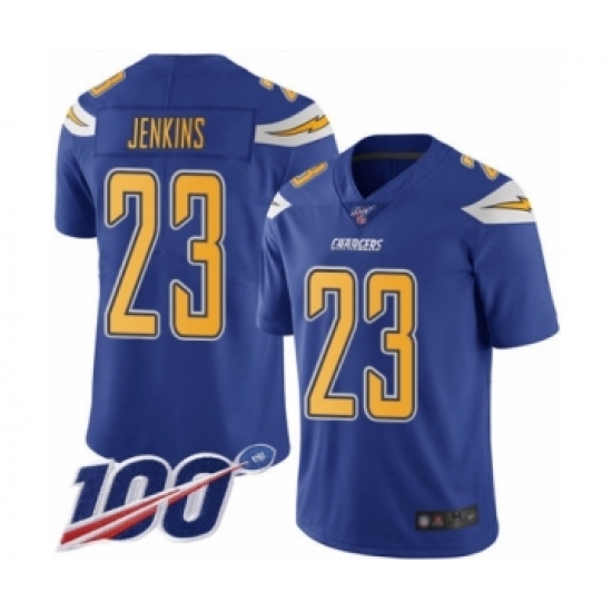 >Men's Los Angeles Chargers #23 Rayshawn Jenkins Limited Electric Blue Rush Vapor Untouchable 100th Season Football Jersey