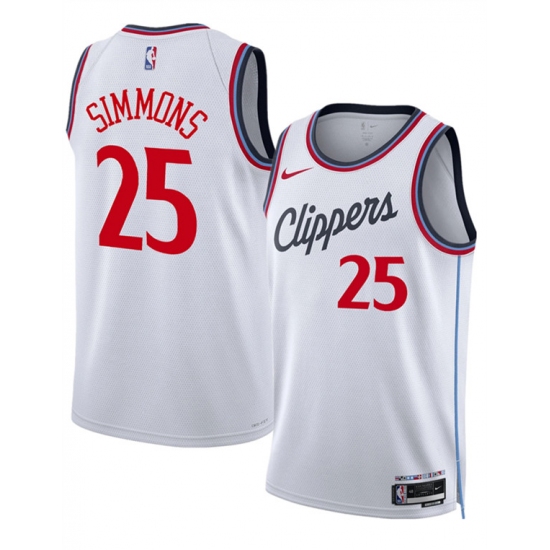 Men's Los Angeles Clippers #25 Ben Simmons White 2024-25 Stitched Jersey
