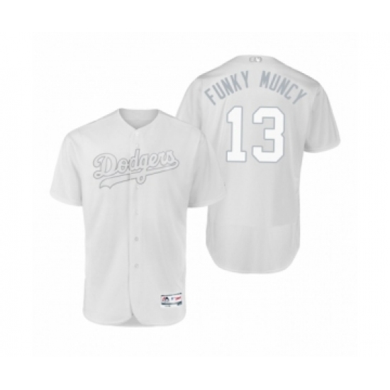 >Men's Los Angeles Dodgers #13 Max Muncy Funky Muncy White 2019 Players' Weekend Authentic Jersey
