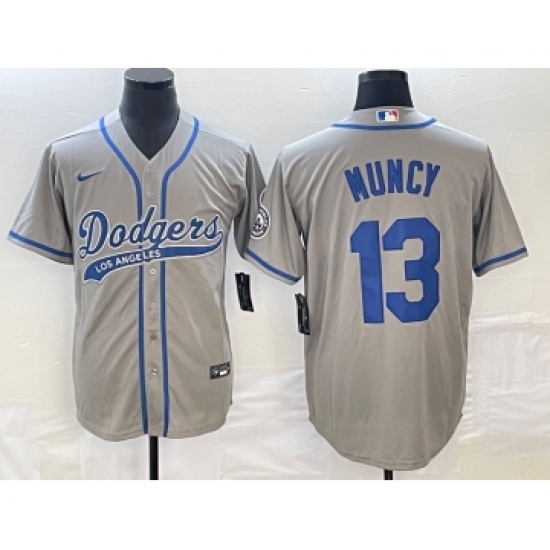 >Men's Los Angeles Dodgers #13 Max Muncy Grey Cool Base Stitched Baseball Jersey