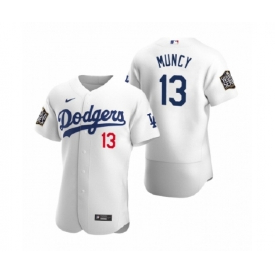 >Men's Los Angeles Dodgers #13 Max Muncy Nike White 2020 World Series Authentic Jersey