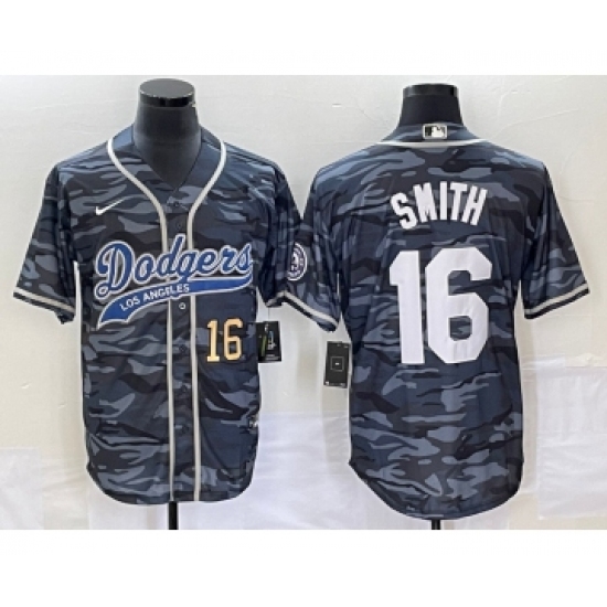 Men's Los Angeles Dodgers #16 Will Smith Number Gray Camo Cool Base Stitched Baseball Jersey