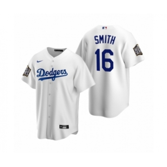 >Men's Los Angeles Dodgers #16 Will Smith White 2020 World Series Replica Jersey