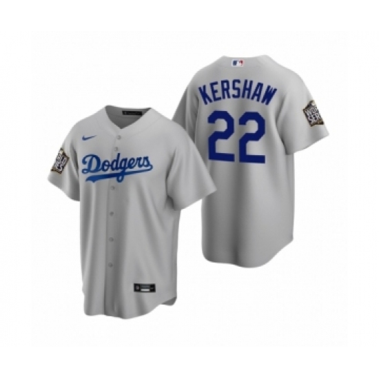 Men's Los Angeles Dodgers #22 Clayton Kershaw Gray 2020 World Series Replica Jersey