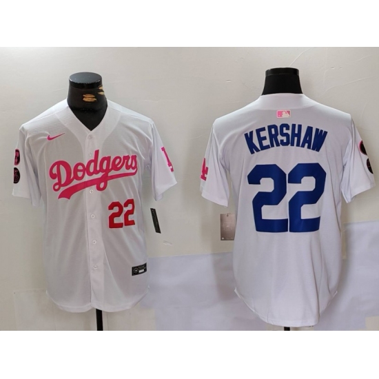 Men's Los Angeles Dodgers #22 Clayton Kershaw White Pink Vin & Kobe Stitched Baseball Jerseys