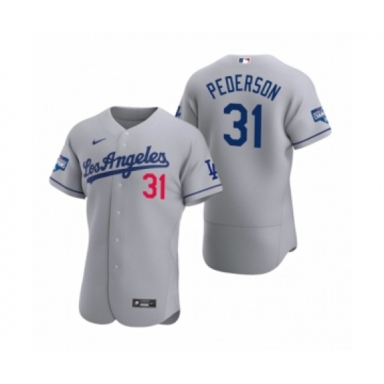 Men's Los Angeles Dodgers #31 Joc Pederson Gray 2020 World Series Champions Road Authentic Jersey