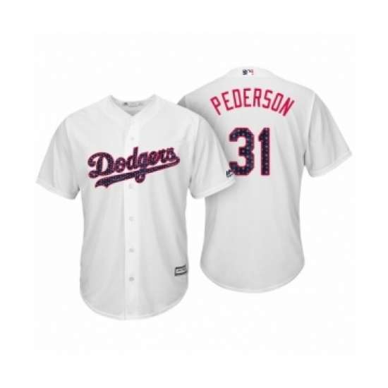 >Men's Los Angeles Dodgers #31 Joc Pederson White 2017 Independence Day Cool Base Jersey