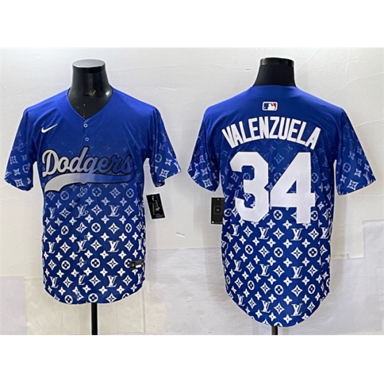 Men's Los Angeles Dodgers #34 Fernando Valenzuela Blue Limited Stitched Baseball Jersey