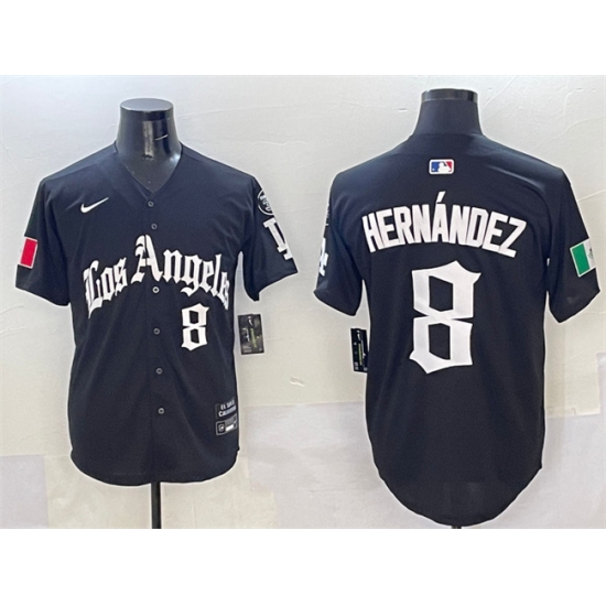 >Men's Los Angeles Dodgers #8 Enrique Hernandez Black Mexico 2025 LA Gothic Style With Fernando Vapor Premier Limited Stitched Baseball Jersey
