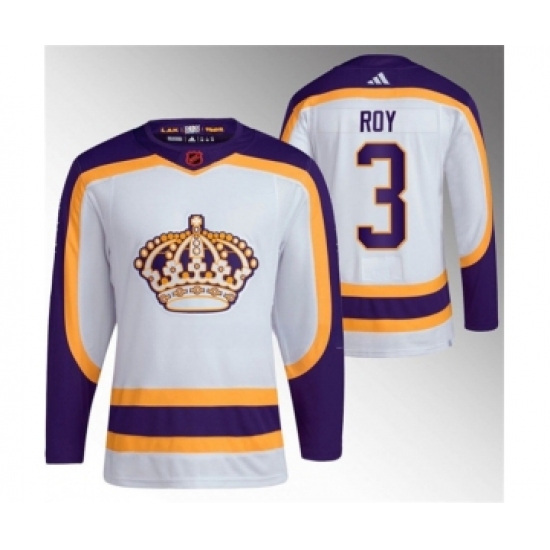 Men's Los Angeles Kings #3 Matt Roy White 2022 Reverse Retro Stitched Jersey
