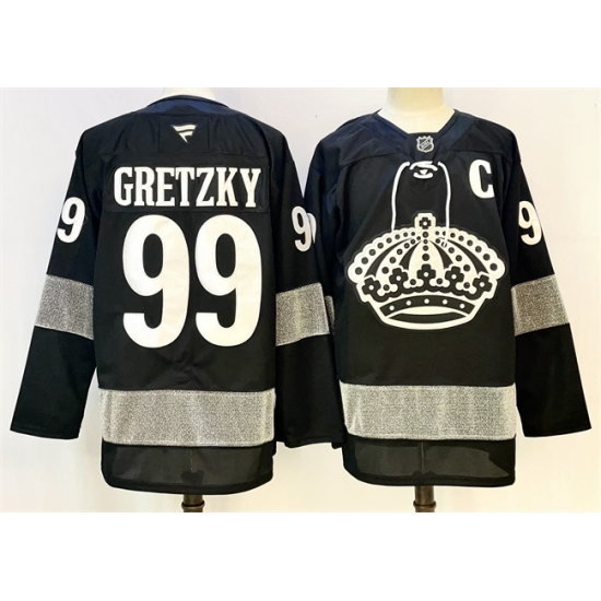 Men's Los Angeles Kings #99 Wayne Gretzky Black With C Alternate Stitched Hockey Jersey