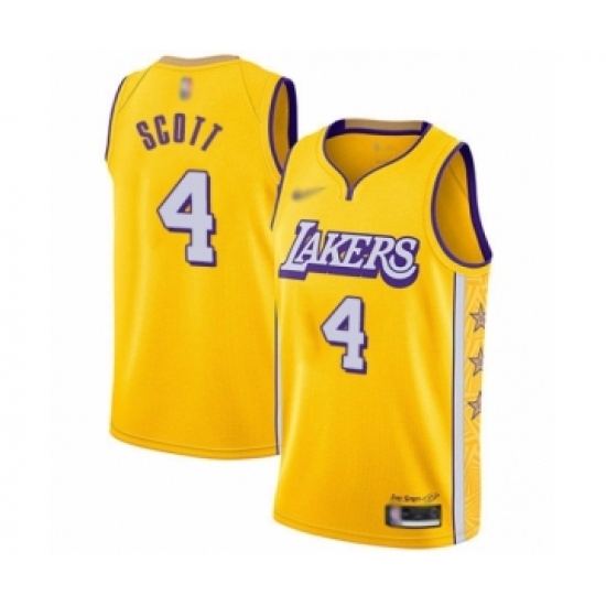 >Men's Los Angeles Lakers #4 Byron Scott Swingman Gold 2019-20 City Edition Basketball Jersey