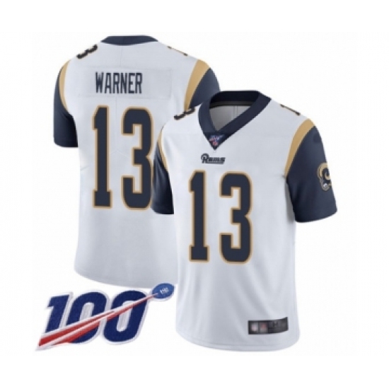 Men's Los Angeles Rams #13 Kurt Warner White Vapor Untouchable Limited Player 100th Season Football Jersey