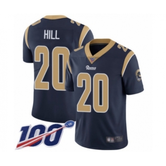 >Men's Los Angeles Rams #20 Troy Hill Navy Blue Team Color Vapor Untouchable Limited Player 100th Season Football Jersey