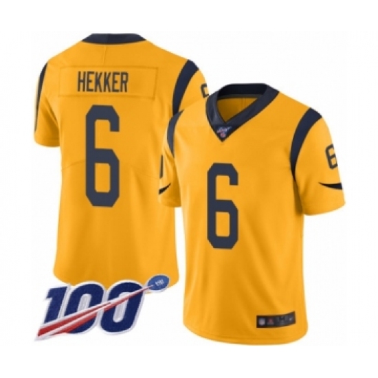 >Men's Los Angeles Rams #6 Johnny Hekker Limited Gold Rush Vapor Untouchable 100th Season Football Jersey