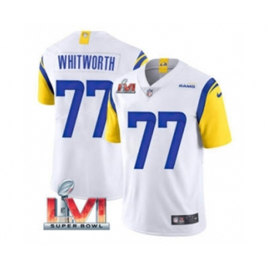 >Men's Los Angeles Rams #77 Andrew Whitworth White 2022 Super Bowl LVI Vapor Limited Stitched Jersey