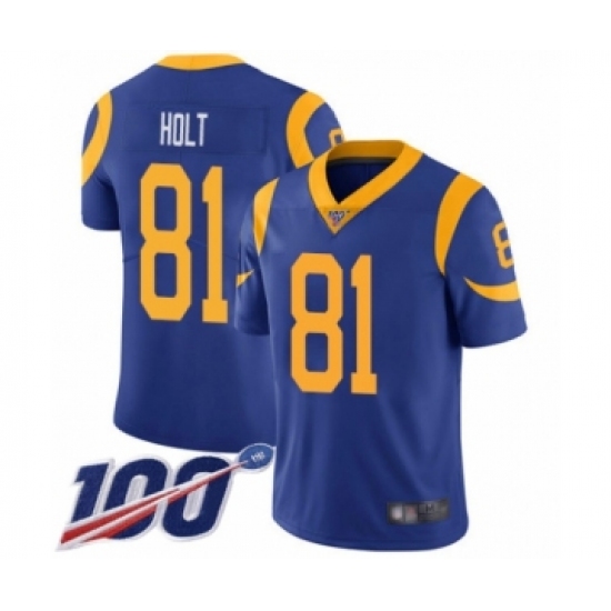 >Men's Los Angeles Rams #81 Torry Holt Royal Blue Alternate Vapor Untouchable Limited Player 100th Season Football Jersey