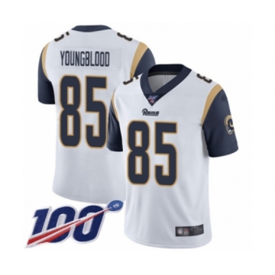Men's Los Angeles Rams #85 Jack Youngblood White Vapor Untouchable Limited Player 100th Season Football Jersey