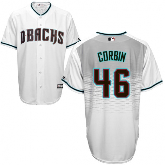 Home>MLB>Arizona Diamondbacks>Patrick Corbin>Men's Majestic Arizona Diamondbacks #46 Patrick Corbin Replica White/Capri Cool Base MLB Jersey