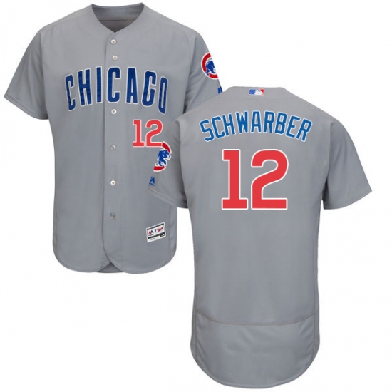 Home>MLB>Chicago Cubs>Kyle Schwarber>Men's Majestic Chicago Cubs #12 Kyle Schwarber Grey Road Flex Base Authentic Collection MLB Jersey
