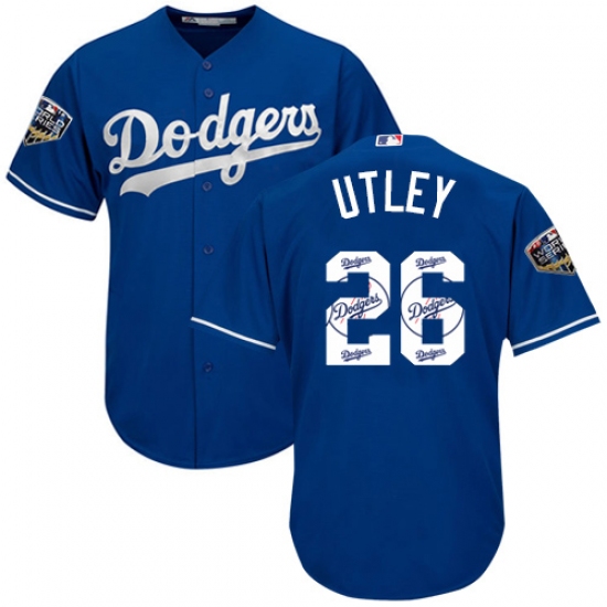 >Men's Majestic Los Angeles Dodgers #26 Chase Utley Authentic Royal Blue Team Logo Fashion Cool Base 2018 World Series MLB Jersey
