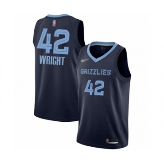 Men's Memphis Grizzlies #42 Lorenzen Wright Authentic Navy Blue Finished Basketball Jersey - Icon Edition