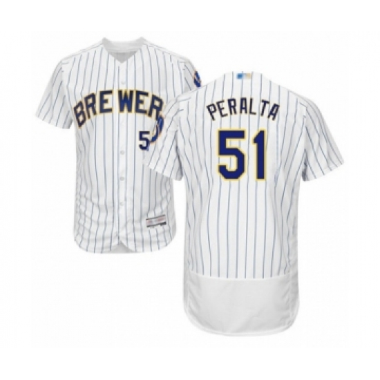 Men's Milwaukee Brewers #51 Freddy Peralta White Home Flex Base Authentic Collection Baseball Player Jersey