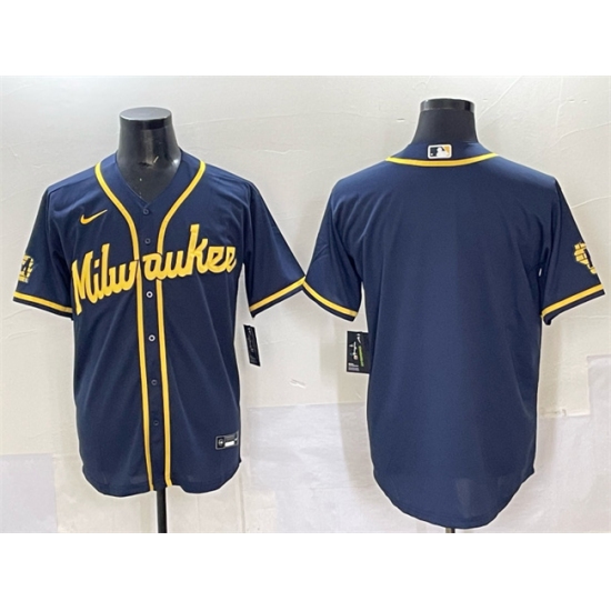 Men's Milwaukee Brewers Blank Navy 2025 With Stitched Baseball Jersey