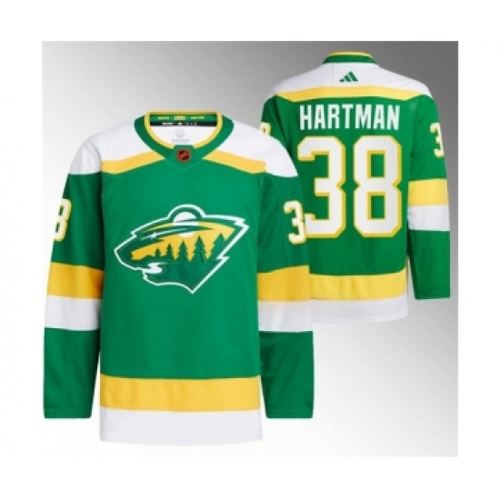 >Men's Minnesota Wild #38 Ryan Hartman Green 2022-23 Reverse Retro Stitched Jersey