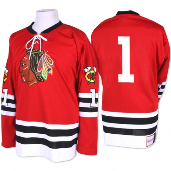 Men's Mitchell and Ness Chicago Blackhawks #1 Glenn Hall Premier Red 1960-61 Throwback NHL Jersey