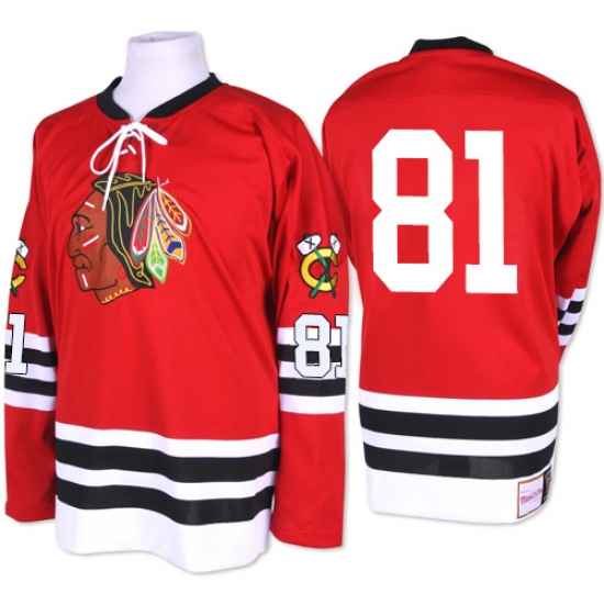 Men's Mitchell and Ness Chicago Blackhawks #81 Marian Hossa Premier Red 1960-61 Throwback NHL Jersey
